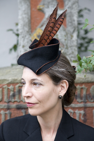 | Der Fascinator – die Vollendung und Veredelung für Abendgarderobe und -frisur. Hier die Modelle: Fontange, Pirat, Writer und Duchesse. Material: schwarzer Haarfilz, Seide und Federn. Ab 320,- €. |